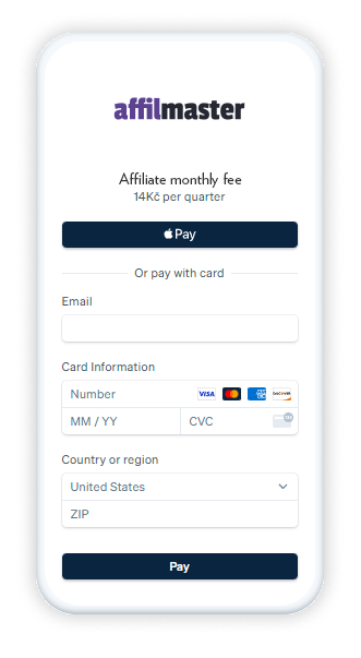 Nechcete platit služby AffilMaster jako provoz Affiliate, nebo mailingu bankovním převodem? Po přihlášení do AffilMaster Statistik najdete odkaz na platbu služeb kartou. Odkaz vám byl zaslán také emailem.